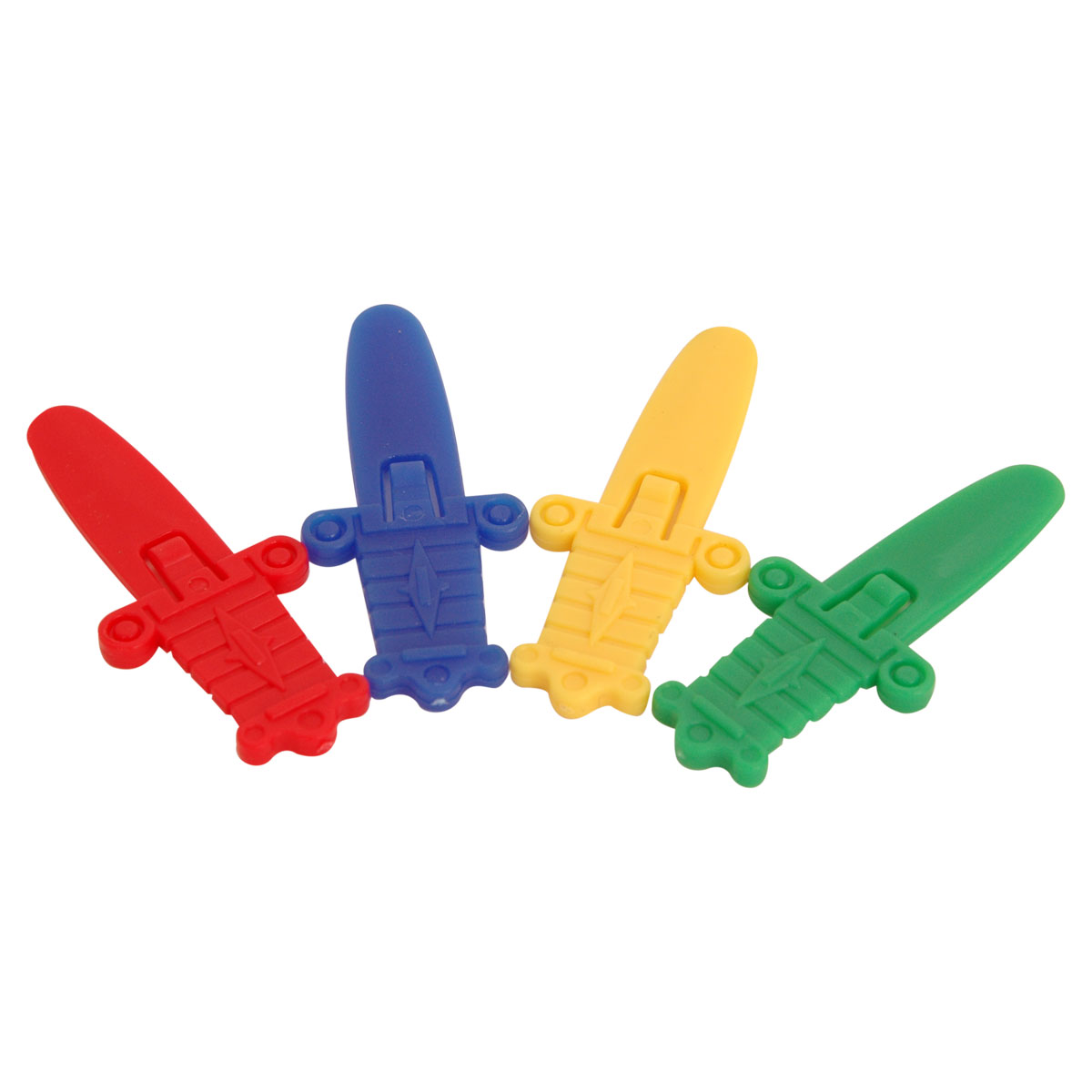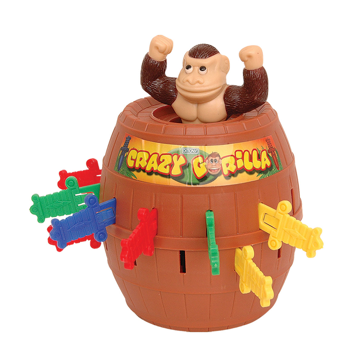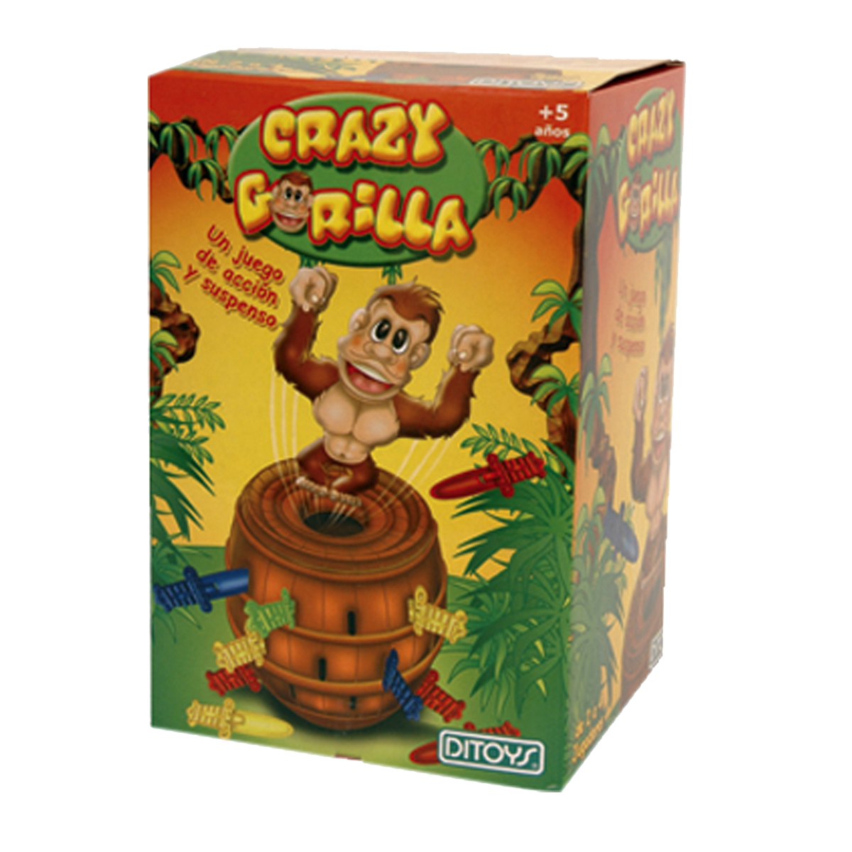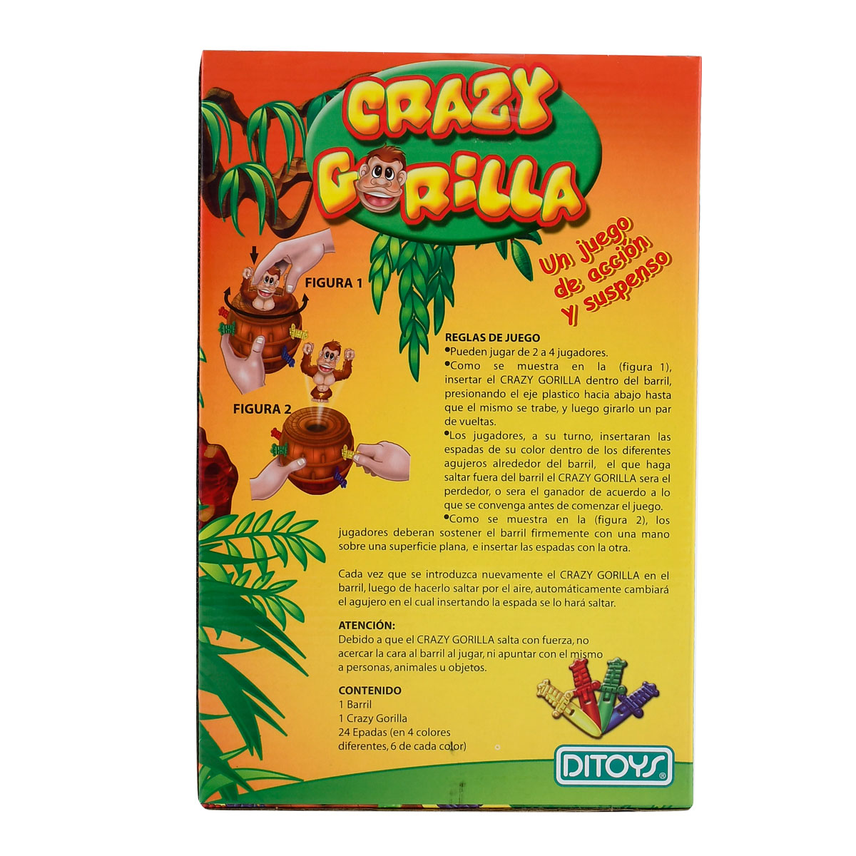 Debes insertar la espadita en el agujero correcto del barril y si te equivocas el mono saltara y seras el que pierda.