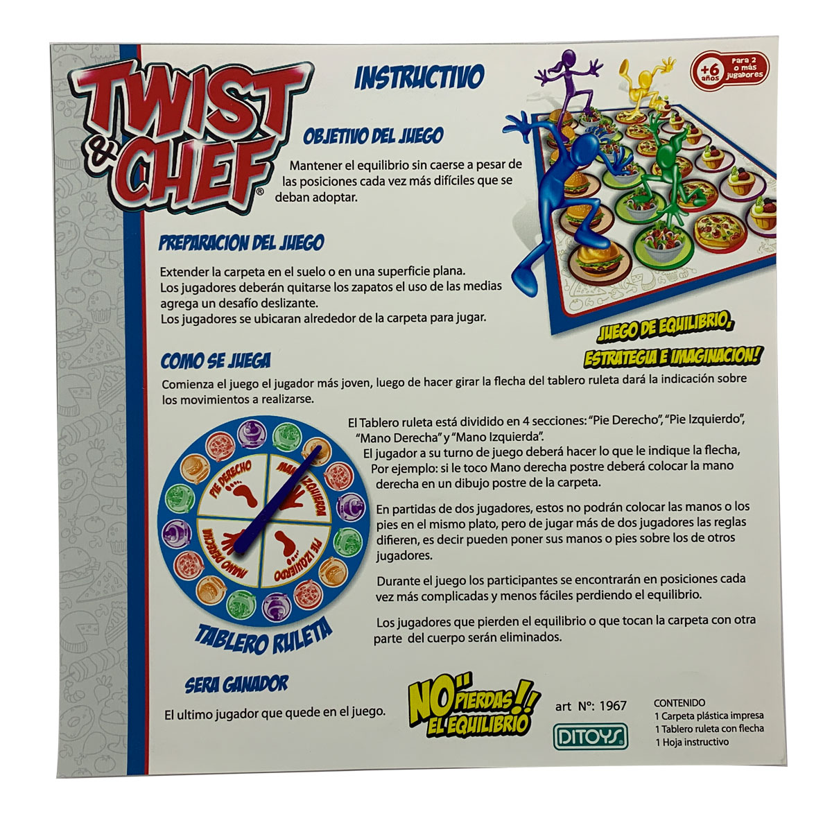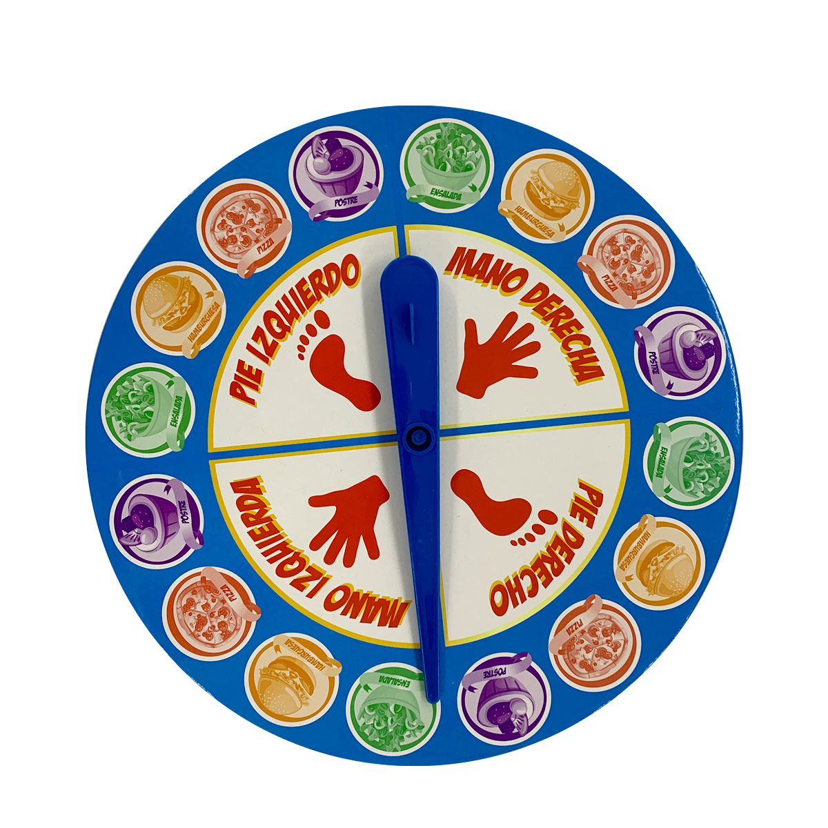 Tenes que sacarte los zapatos y deslplegar la carpeta en el suelo y tirar del tablero ruleta para saber donde deberas apoyar tus pies y manos.