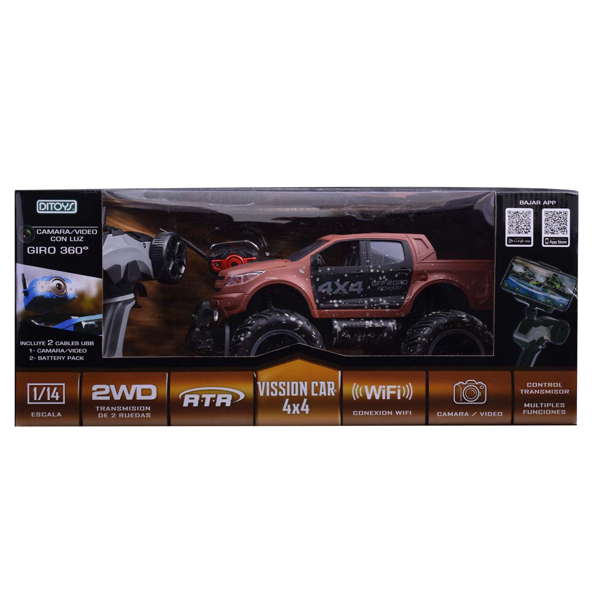 Este increible Off-Road 4X4 a radio Control, viene con Cámara/video con Luz Giro 360º.