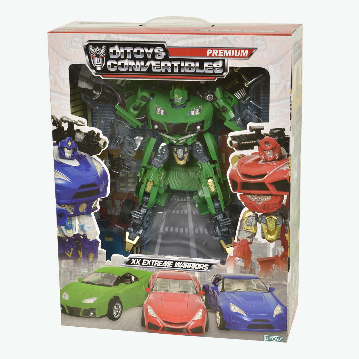 Auto descapotable con puertas que pueden abrirse y se convierte en un increíble robot. Puedes escoger el color que más te guste.