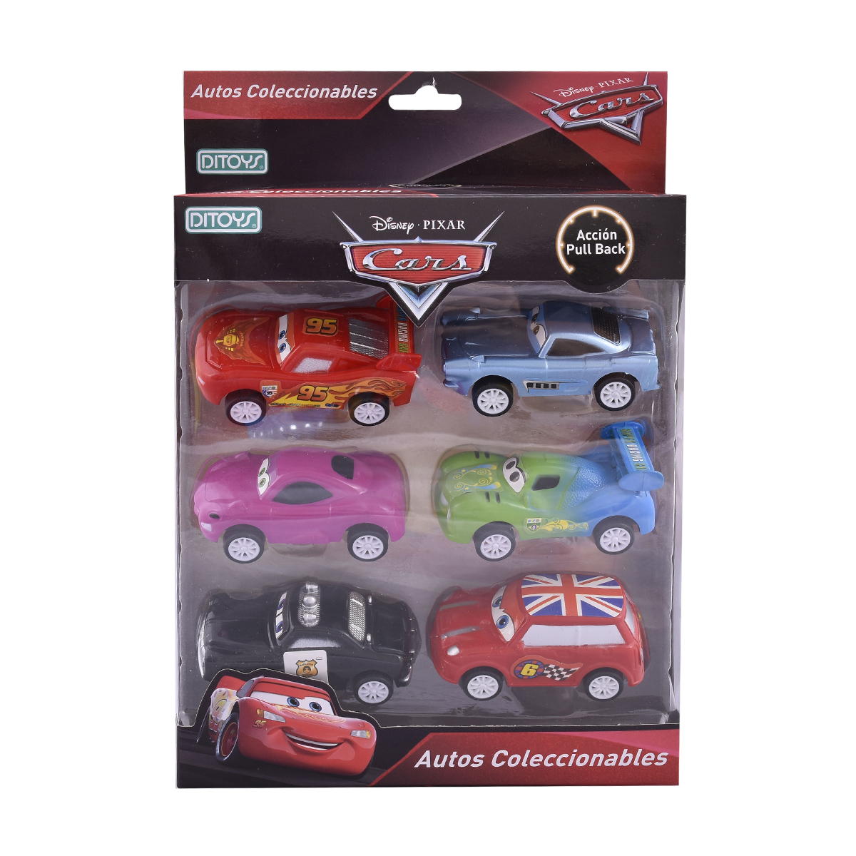 Un set de 6 de autos de Cars Coleccionables. para realizar las mejores carreras y desafios de máxima velocidad.