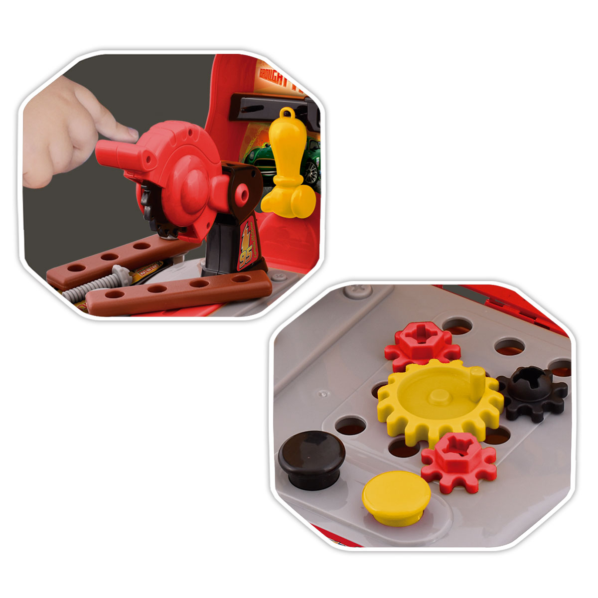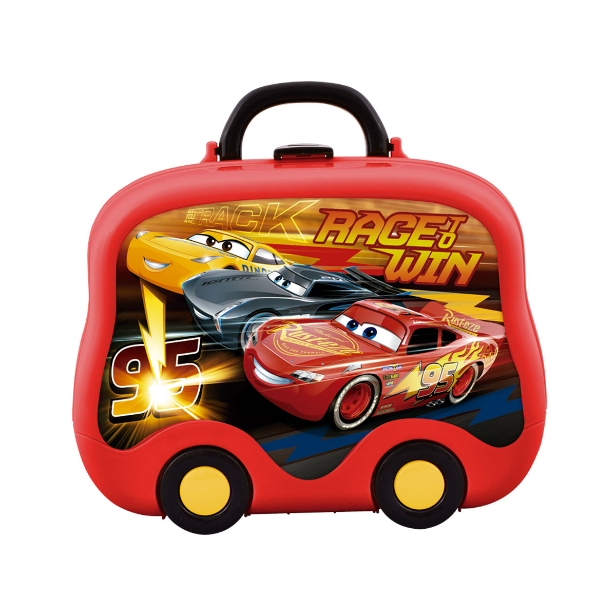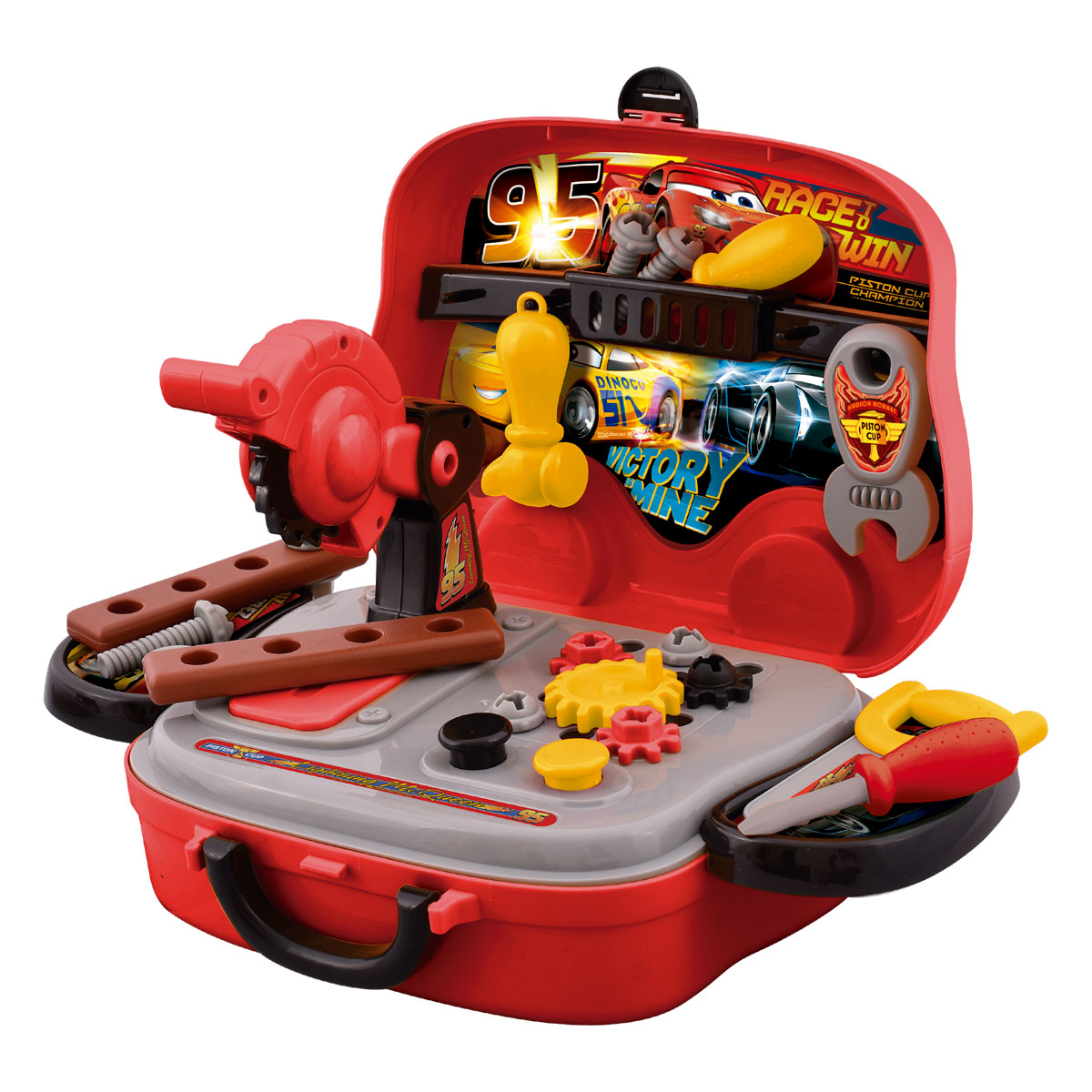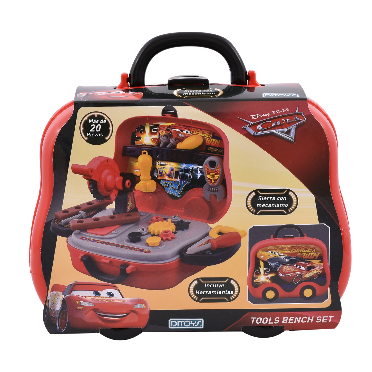 Viene en una super valija para llevarlas donde quieras y reparar todos los autos de cars, y trae una sierra con mecanismo super exclusiva.