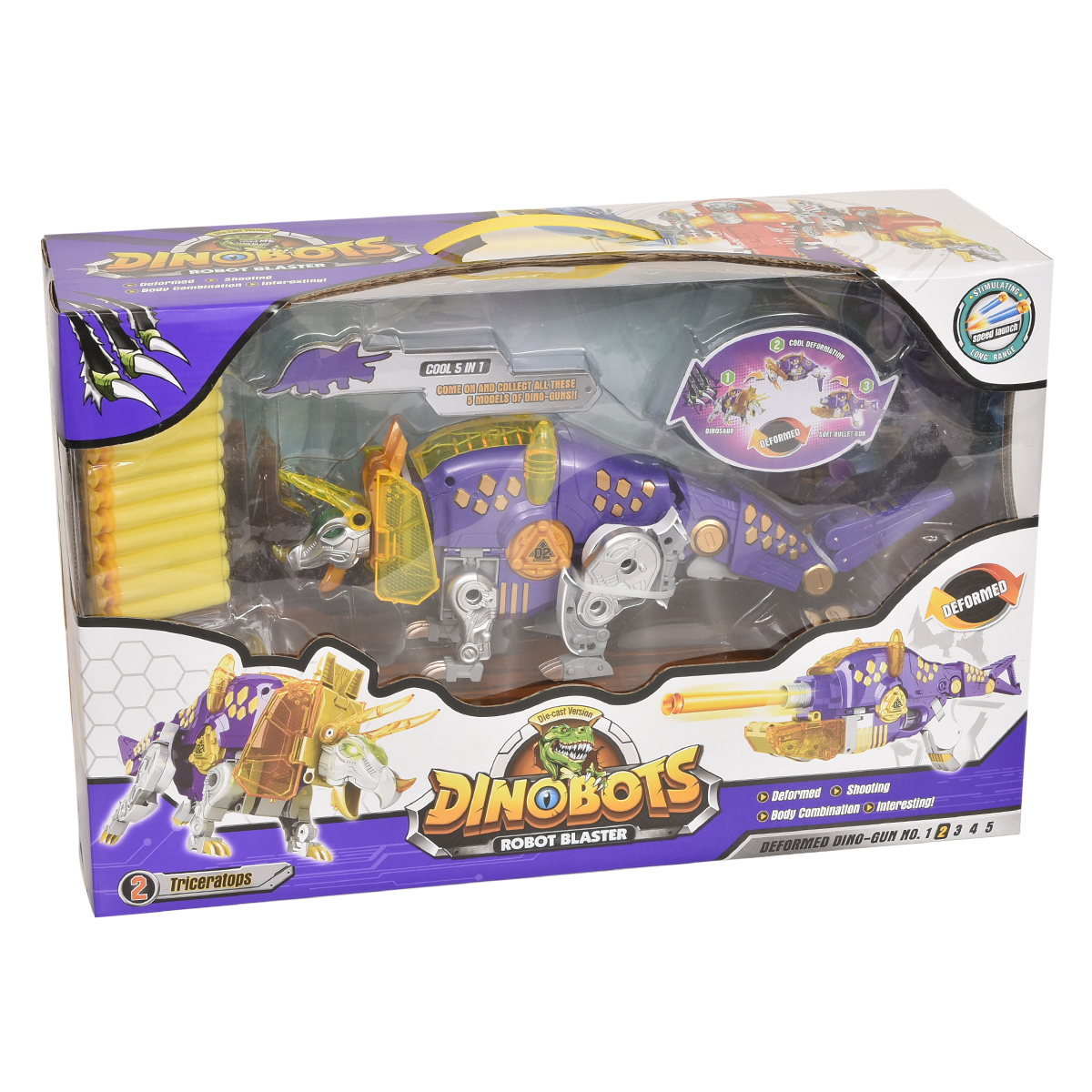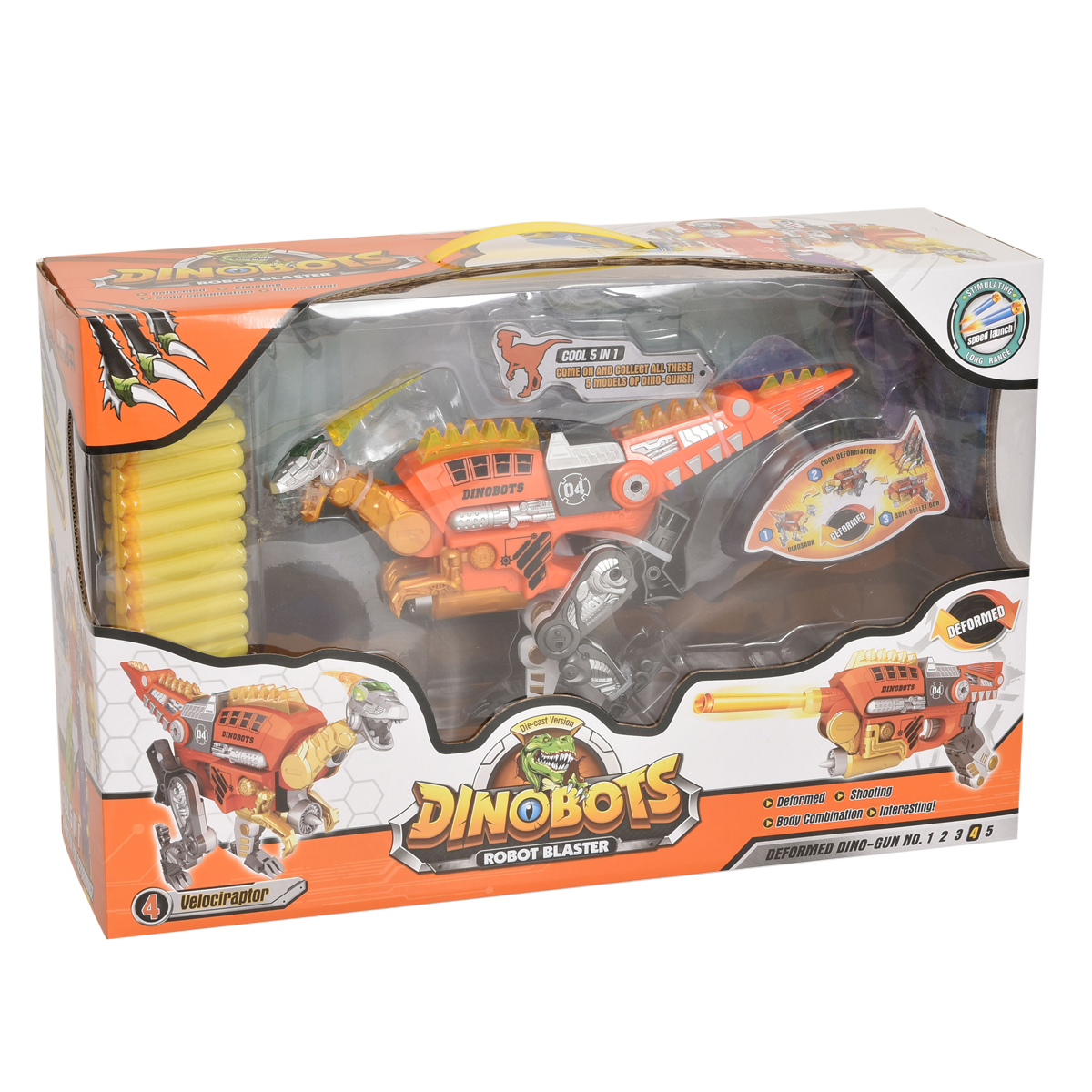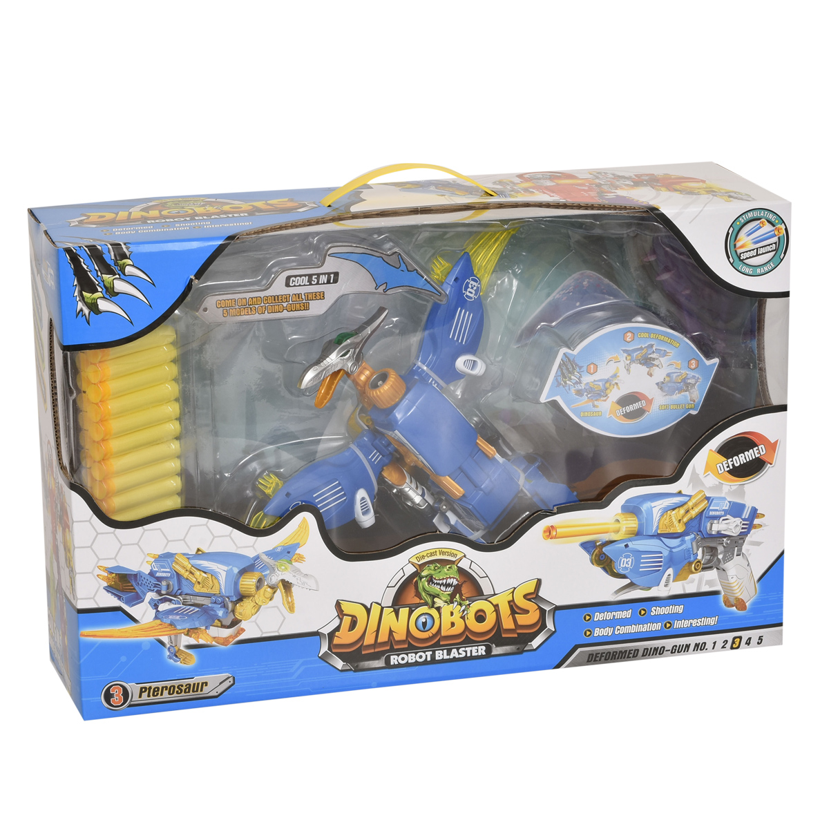 Dinobot Robot Blaster !!! Un pterosaurus, velociraptor, steagosaurus o triceratops que se convierten en una temible pistola que dispara dardos inofensivos.