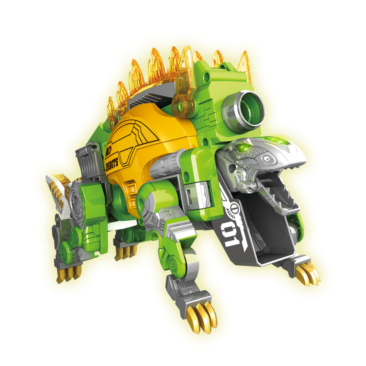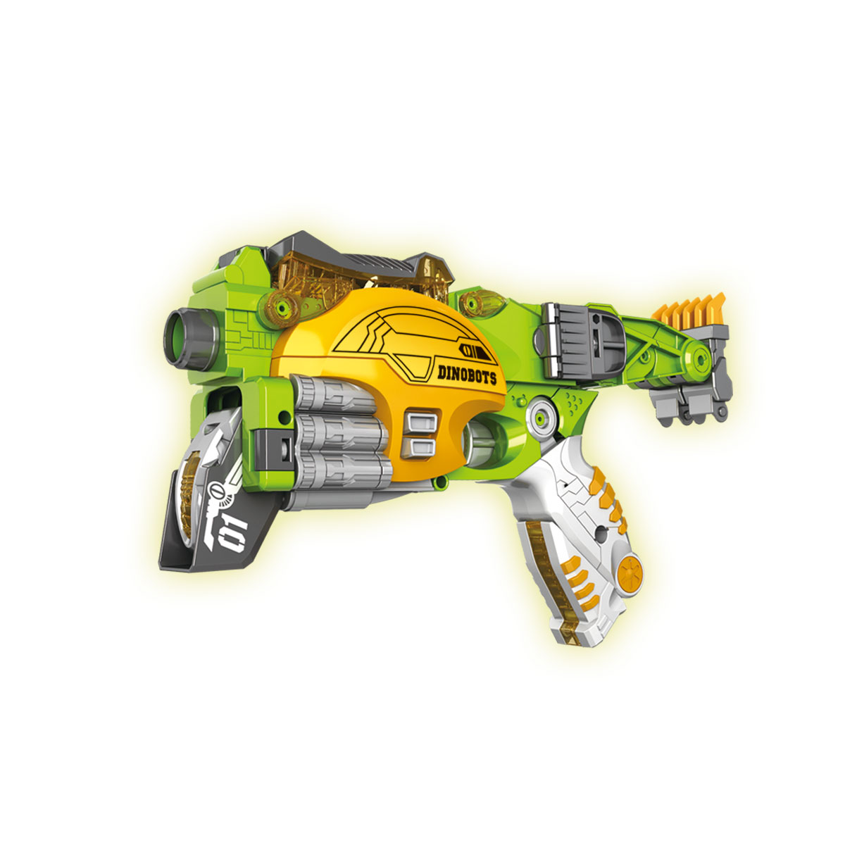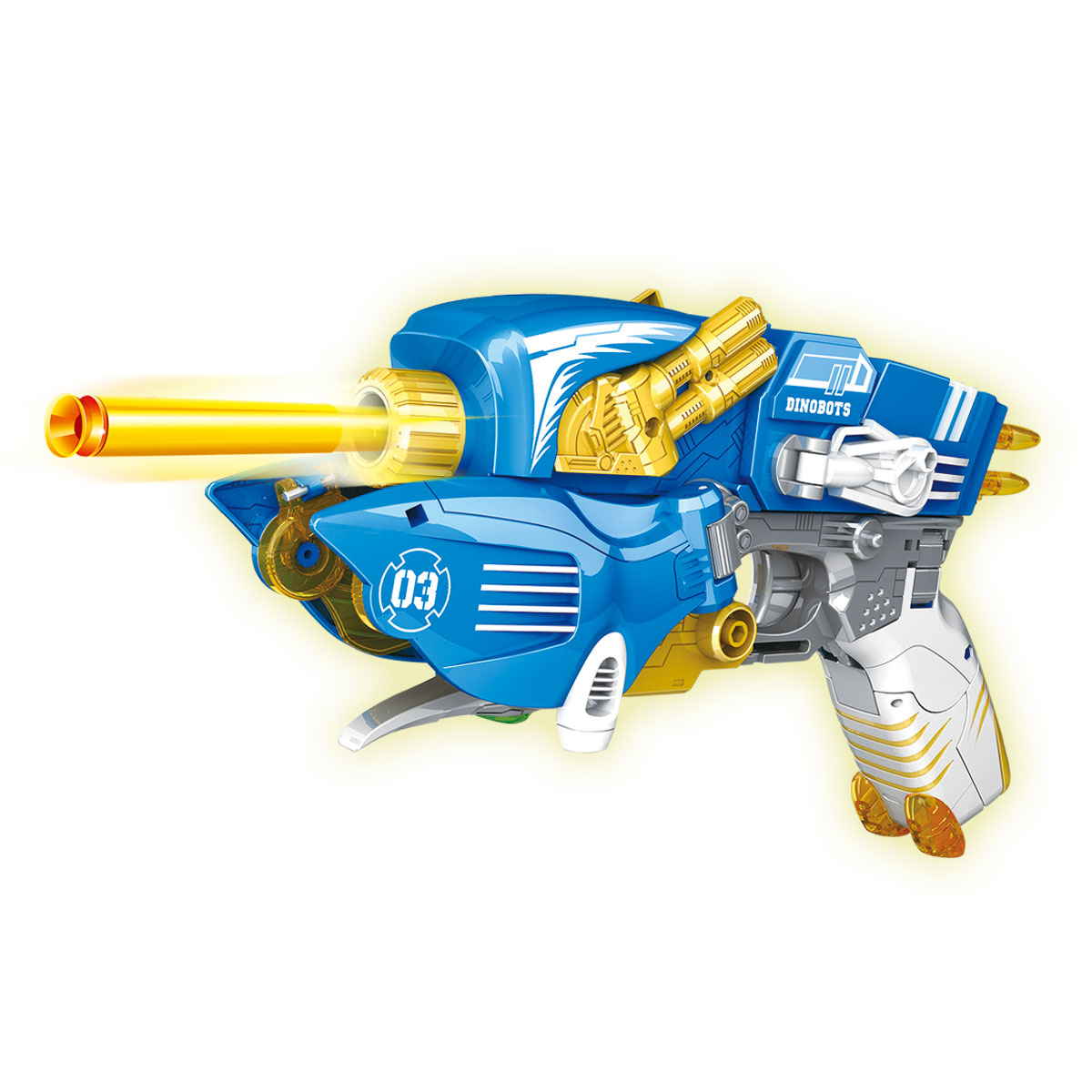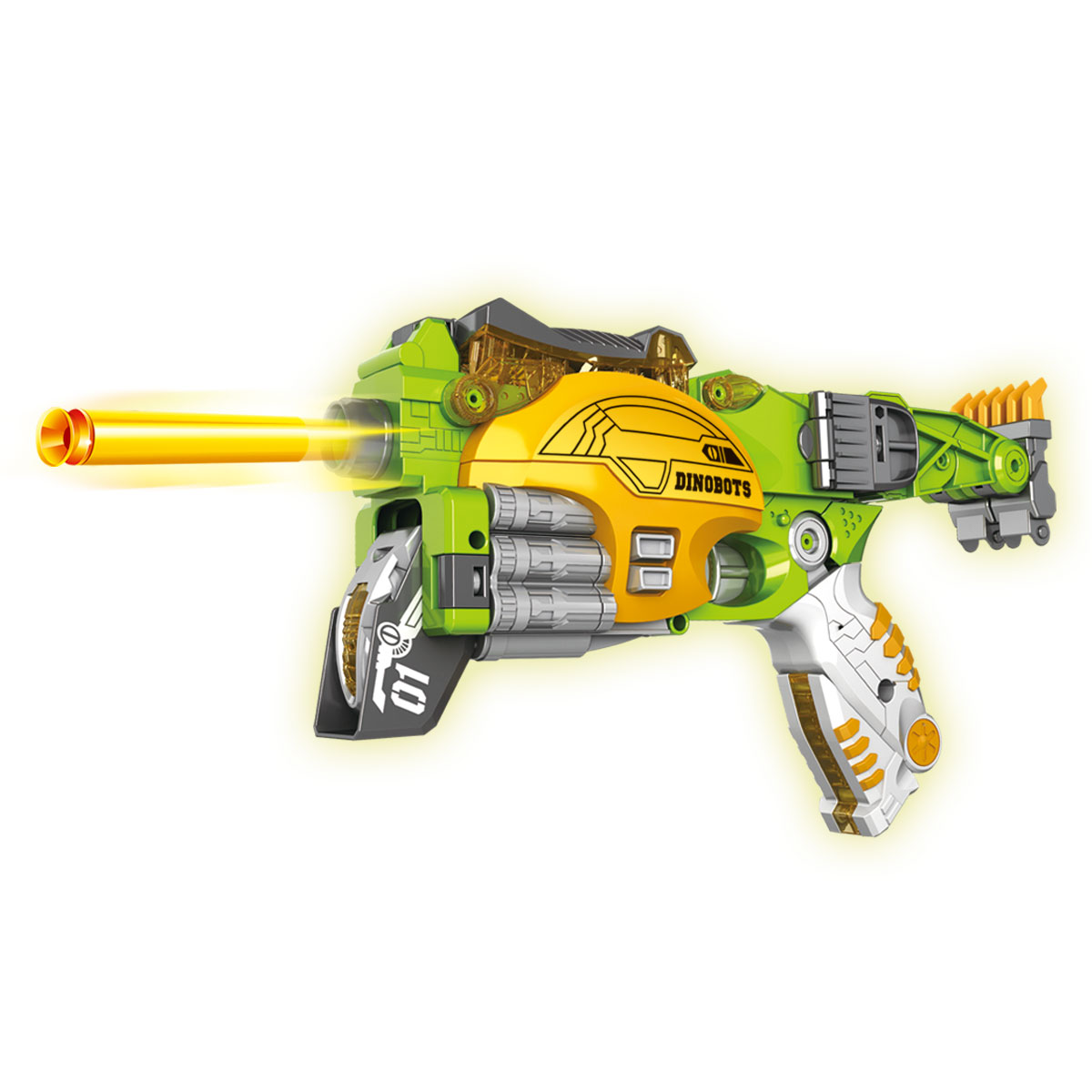 Dinobot Robot Blaster !!! Un pterosaurus, velociraptor, steagosaurus o triceratops que se convierten en una temible pistola que dispara dardos inofensivos.