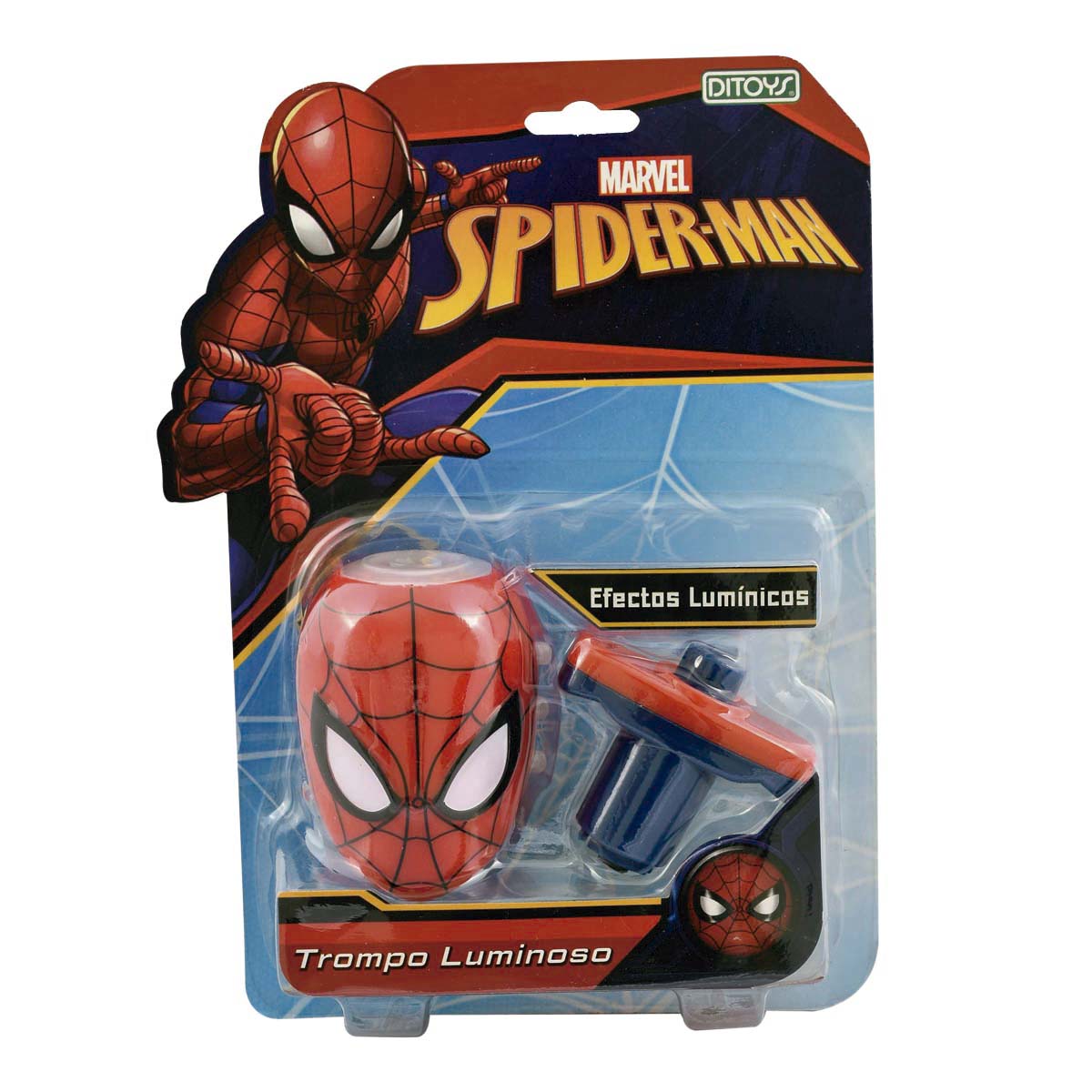 El trompo Spiderman trae efectos luminosos para poder desafiar tu habilidad y precisión también en la oscuridad.