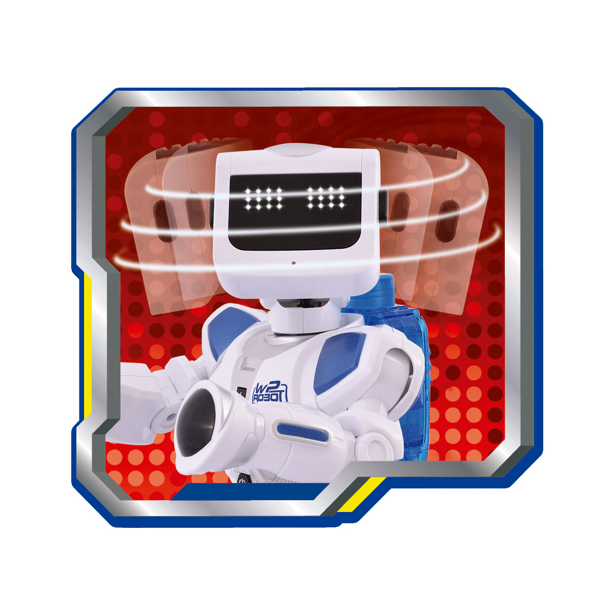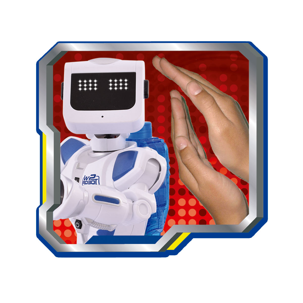 Interacción con aplausos, gira la cabeza 180 grados, con diferentes expresiones.