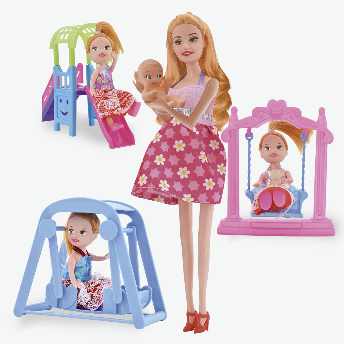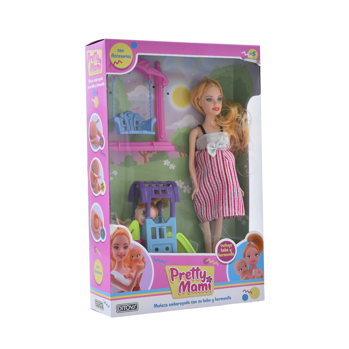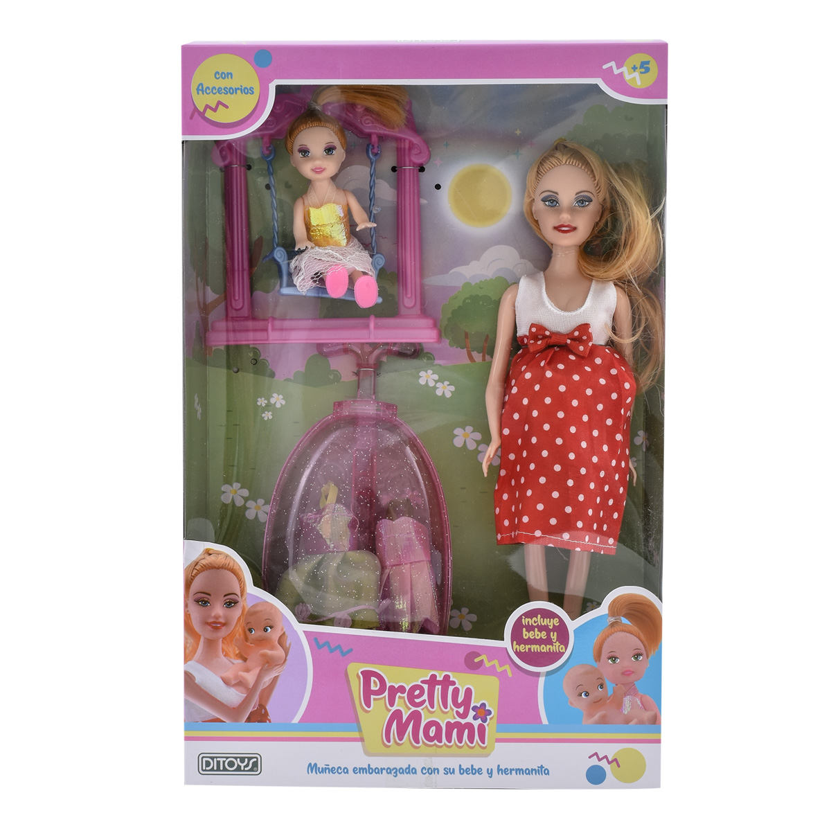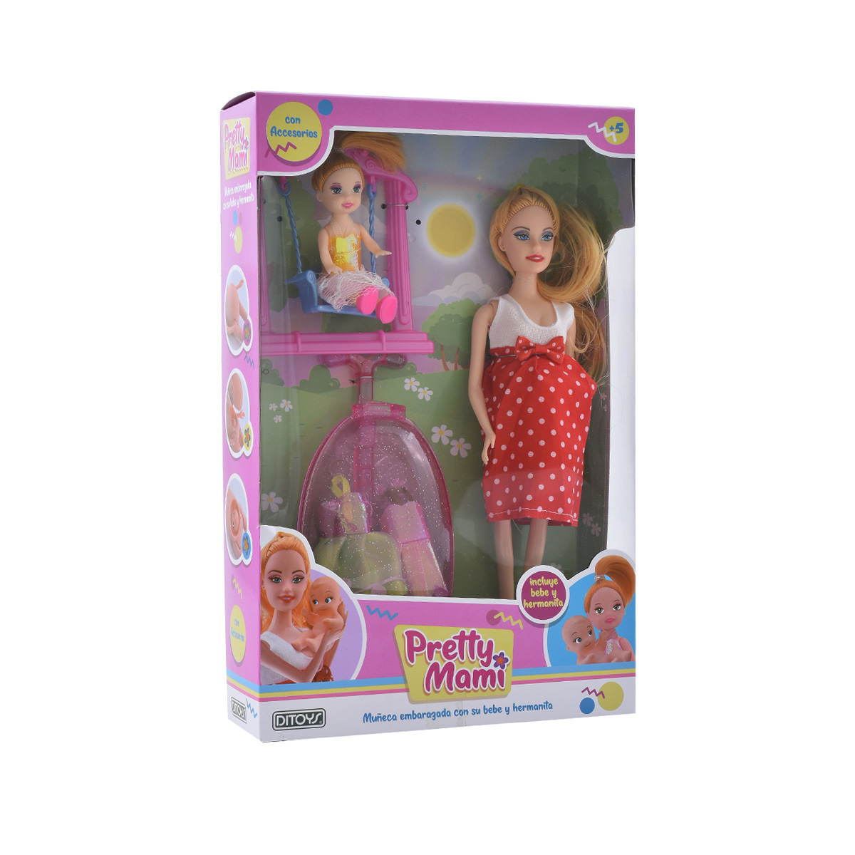 Un set super completo. La muñeca embarazada con su bebe y también con su hermanita !!!.
