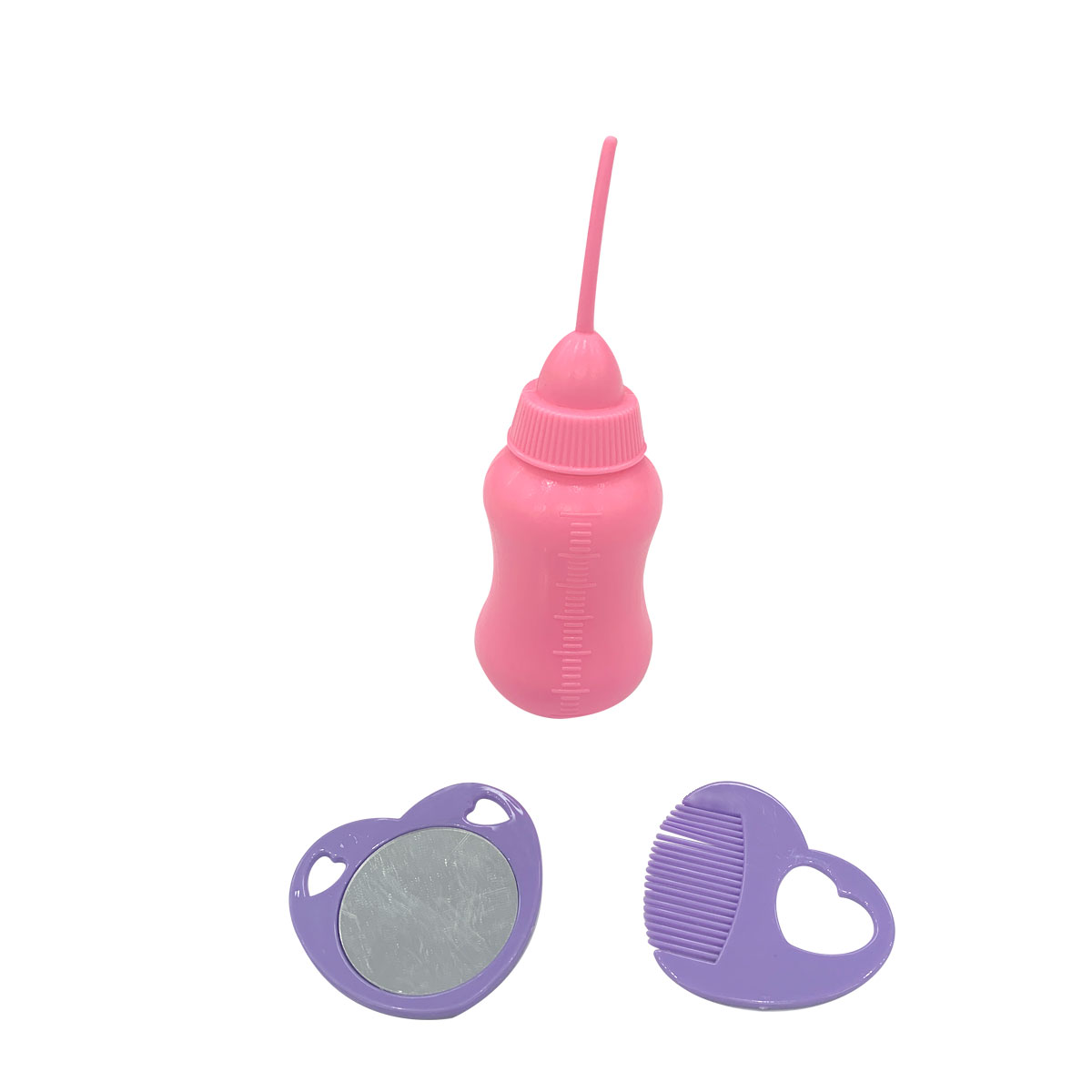 Incluye accesorios como un peine, un espejito o su mamadera.
