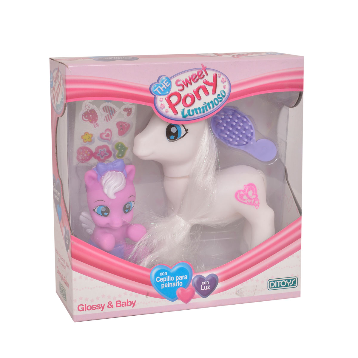Glosy Baby The Sweet Pony viene con cepillo para peinado y luz.