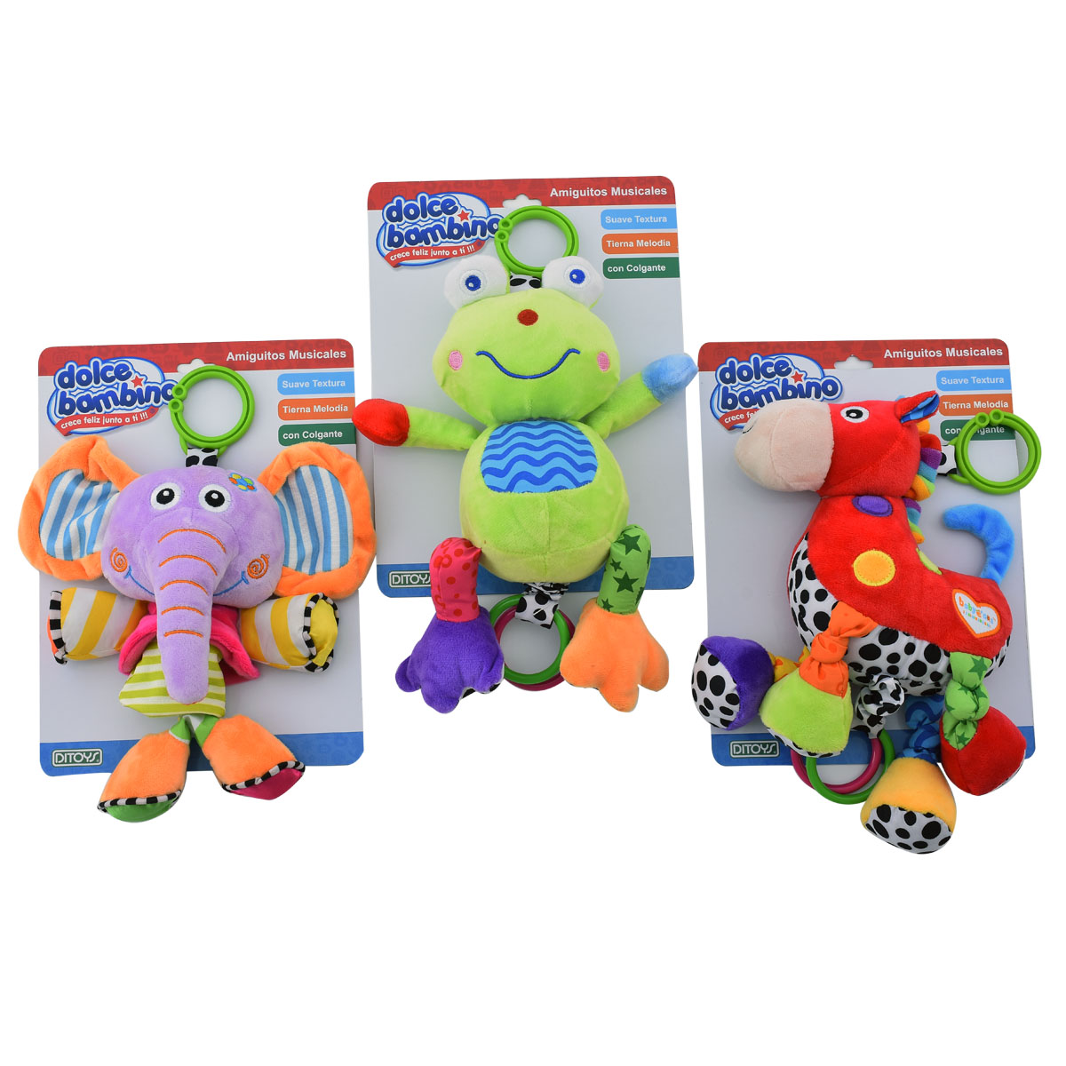 Suave textura. Tiernas melodías y con colgante para poder dejarselo al alcance en su cuna.