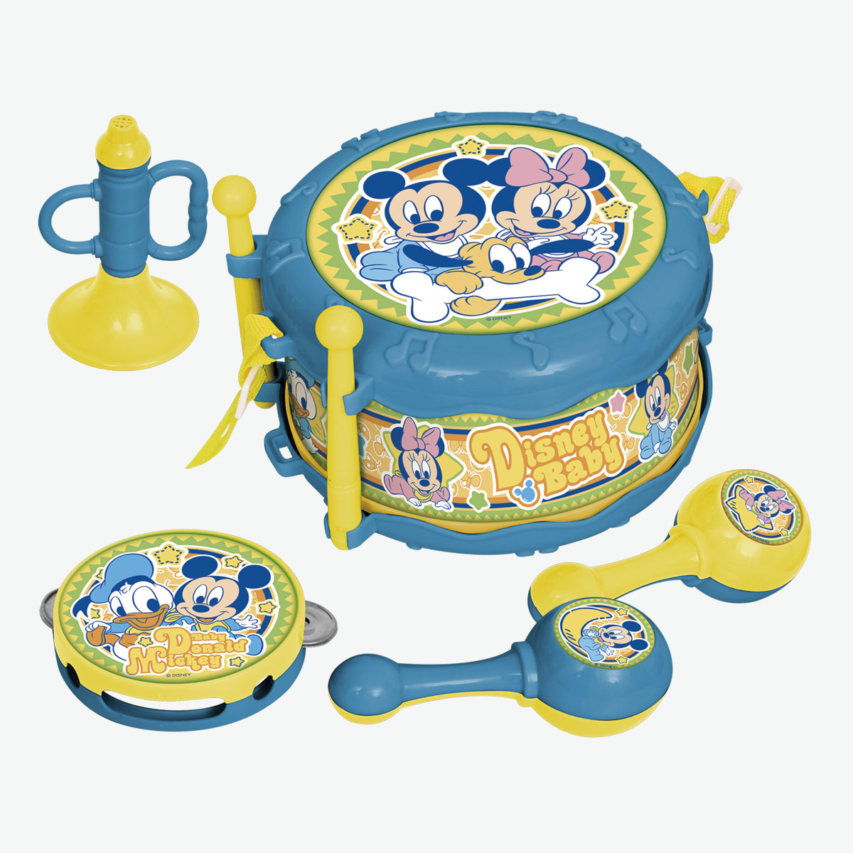 Para formar la propia banda de los niños. Tiene un tambor, pandereta, dos maracas y una trompeta.