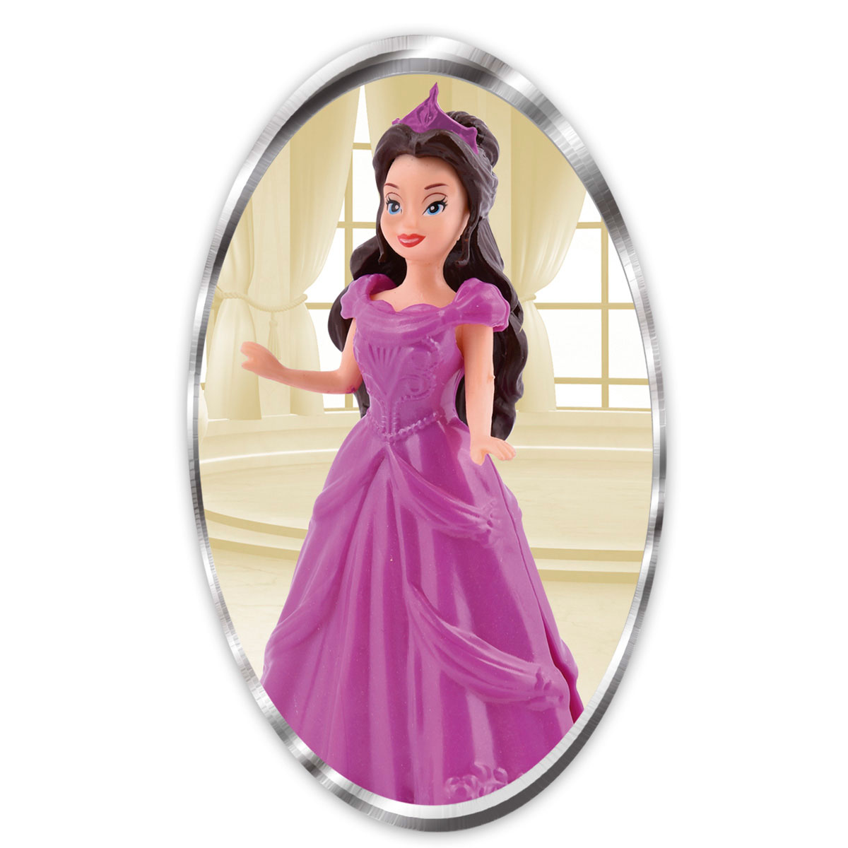De suave textura. Incluye 1 princesa con vestido desmontable para llevarla a pasear por los caminos y parques.