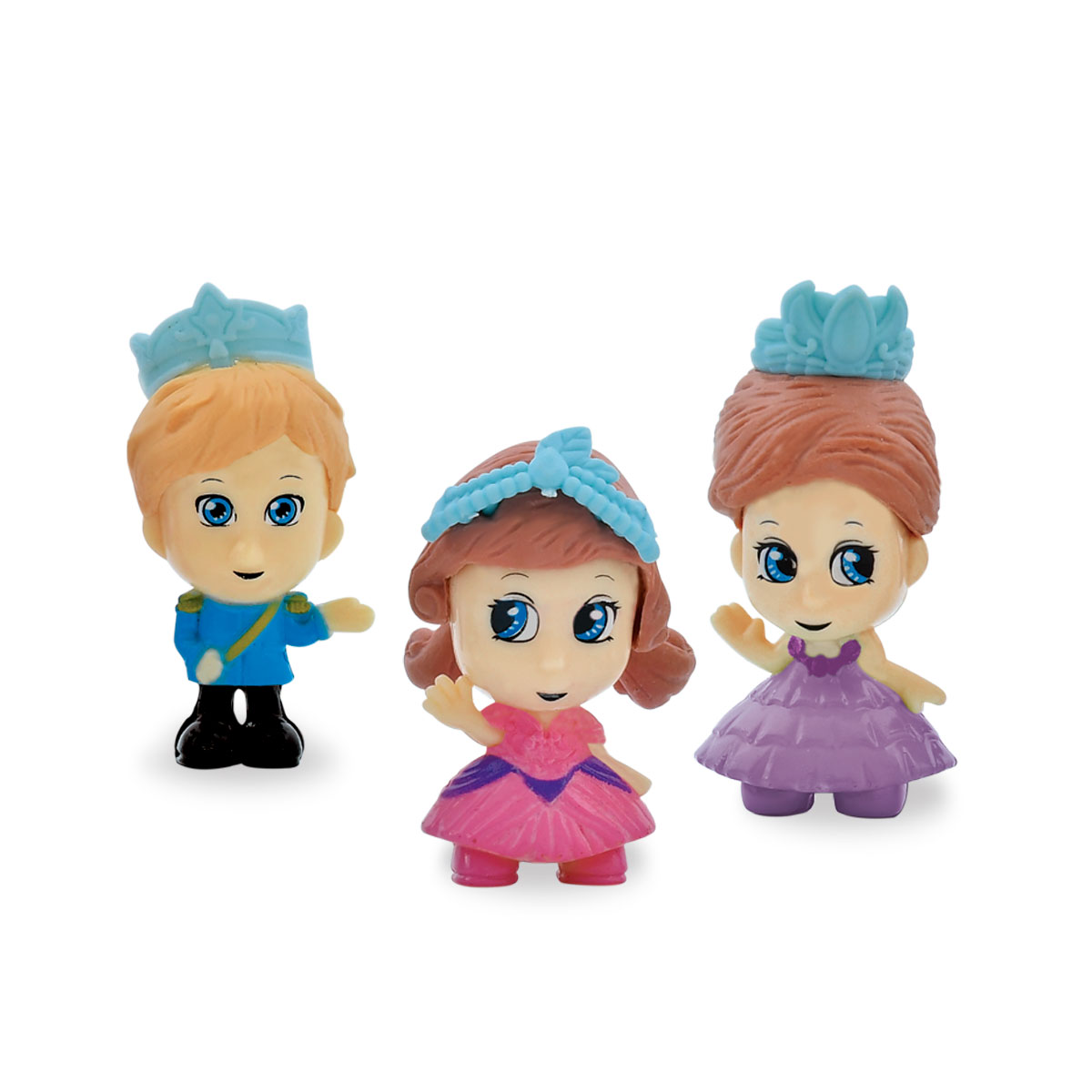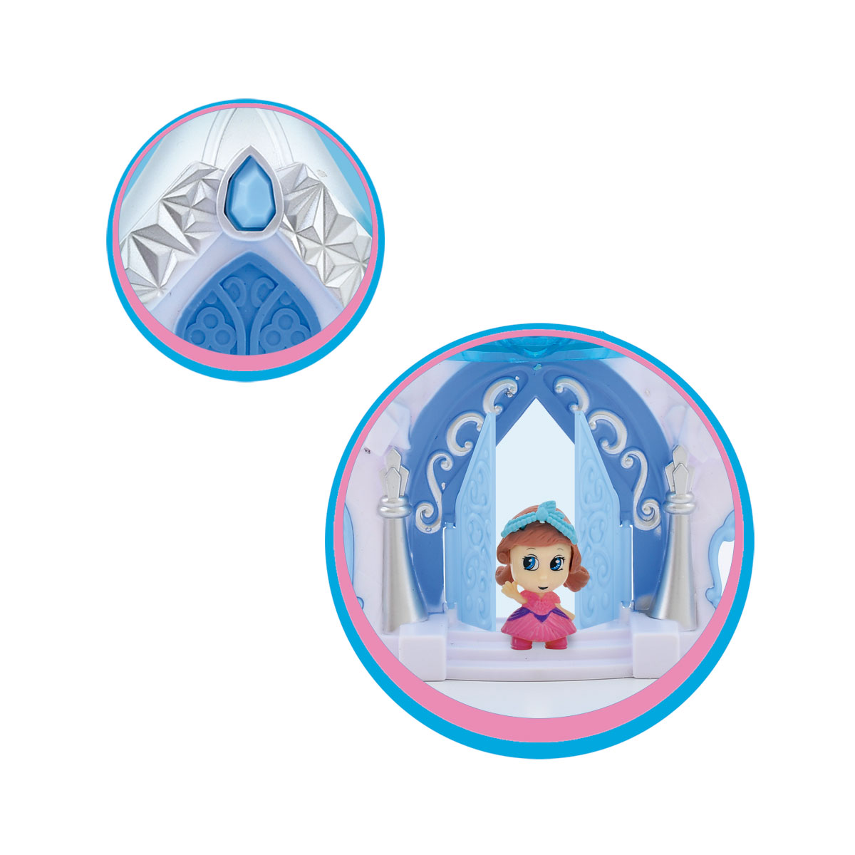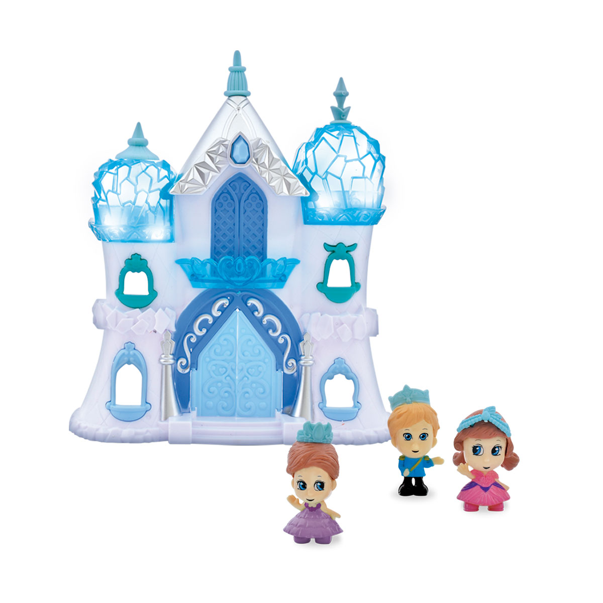Incluye 2 princesas y un principe. Viene con luz y dulces melodias que se activan presionando el botón.